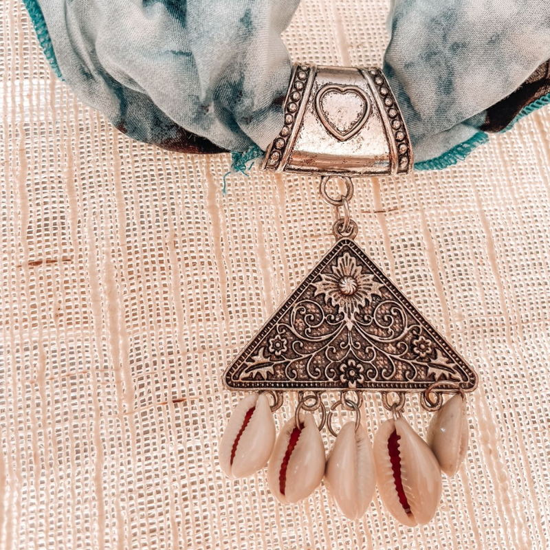 Este pañuelo está pensado para que lo uses como quieras: collar, pulsera, vincha, en la cartera o como detalle en tu peinado. Su diseño de conchas de la playa le da ese toque fresco y natural que transforma cualquier look.